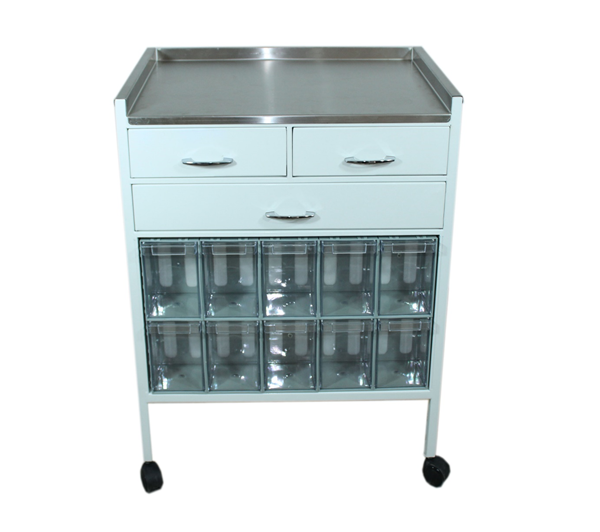 ÜÇ ÇEKMECELİ İLAÇ KUTULU PASLANMAZ ARABA