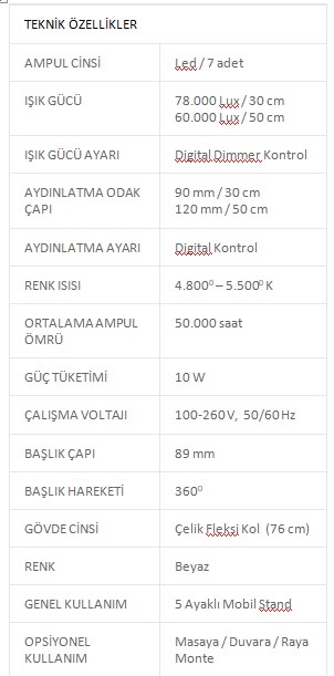 KS-Q7 LEDLİ MUAYENE LAMBASI